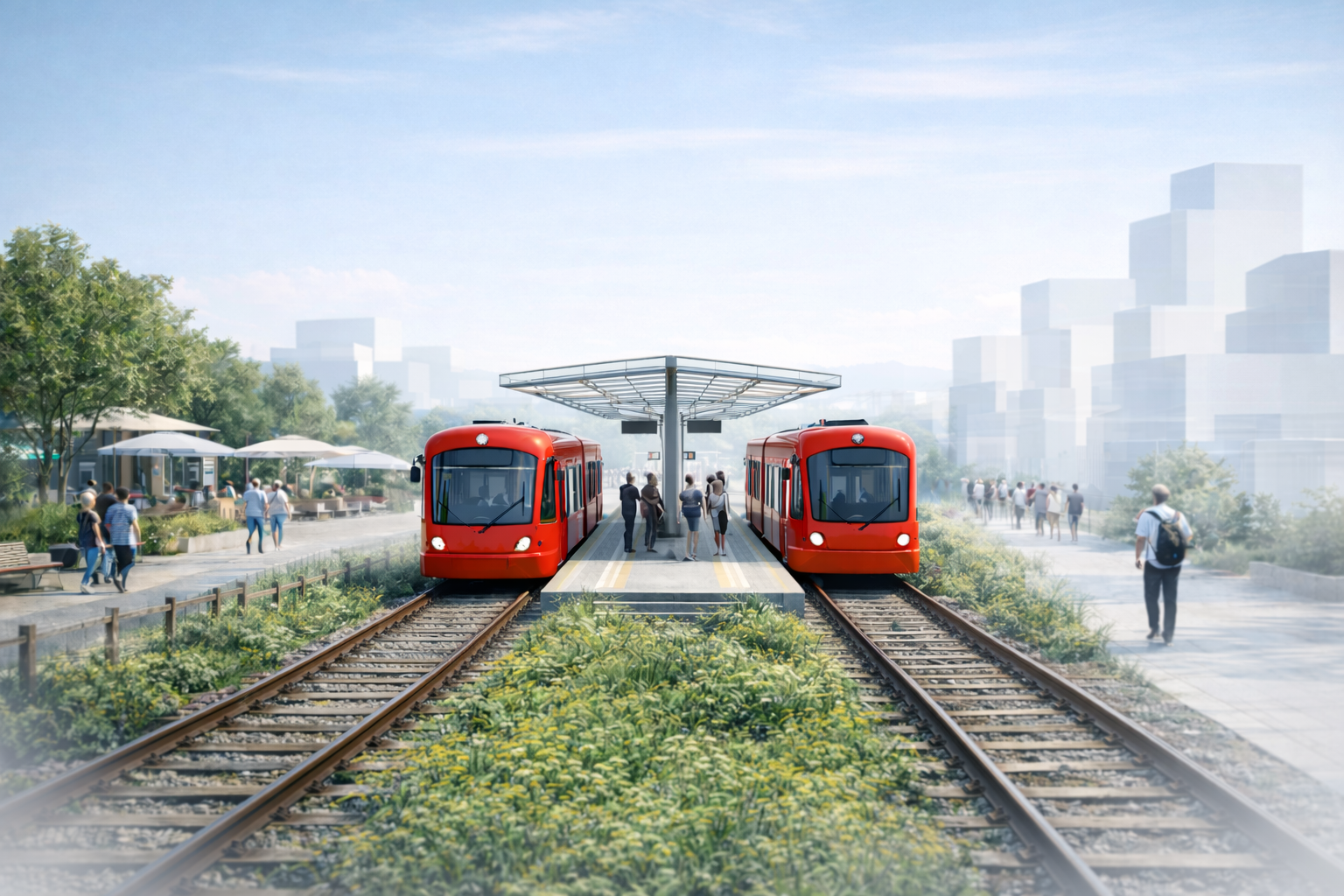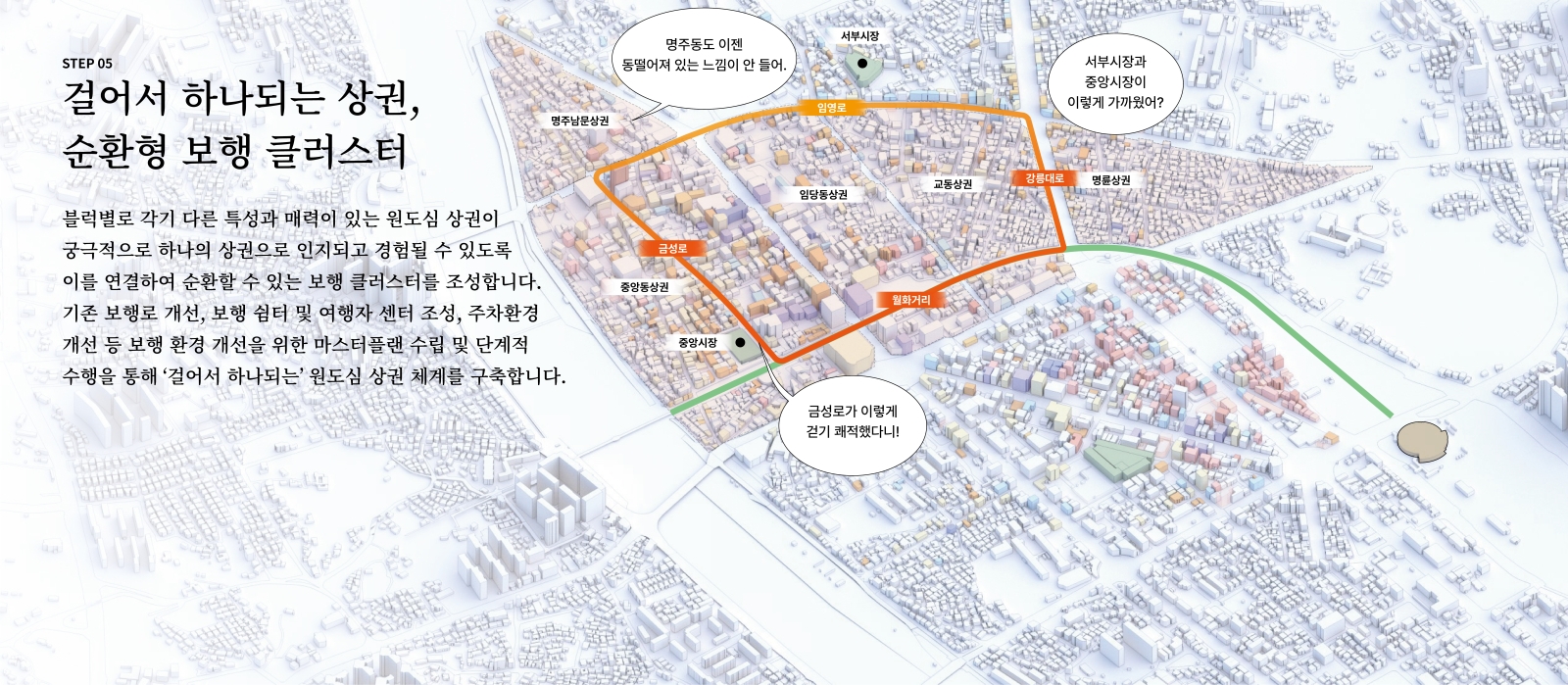 강릉역 - 원도심을 잇는 보행녹지공원과 트램
